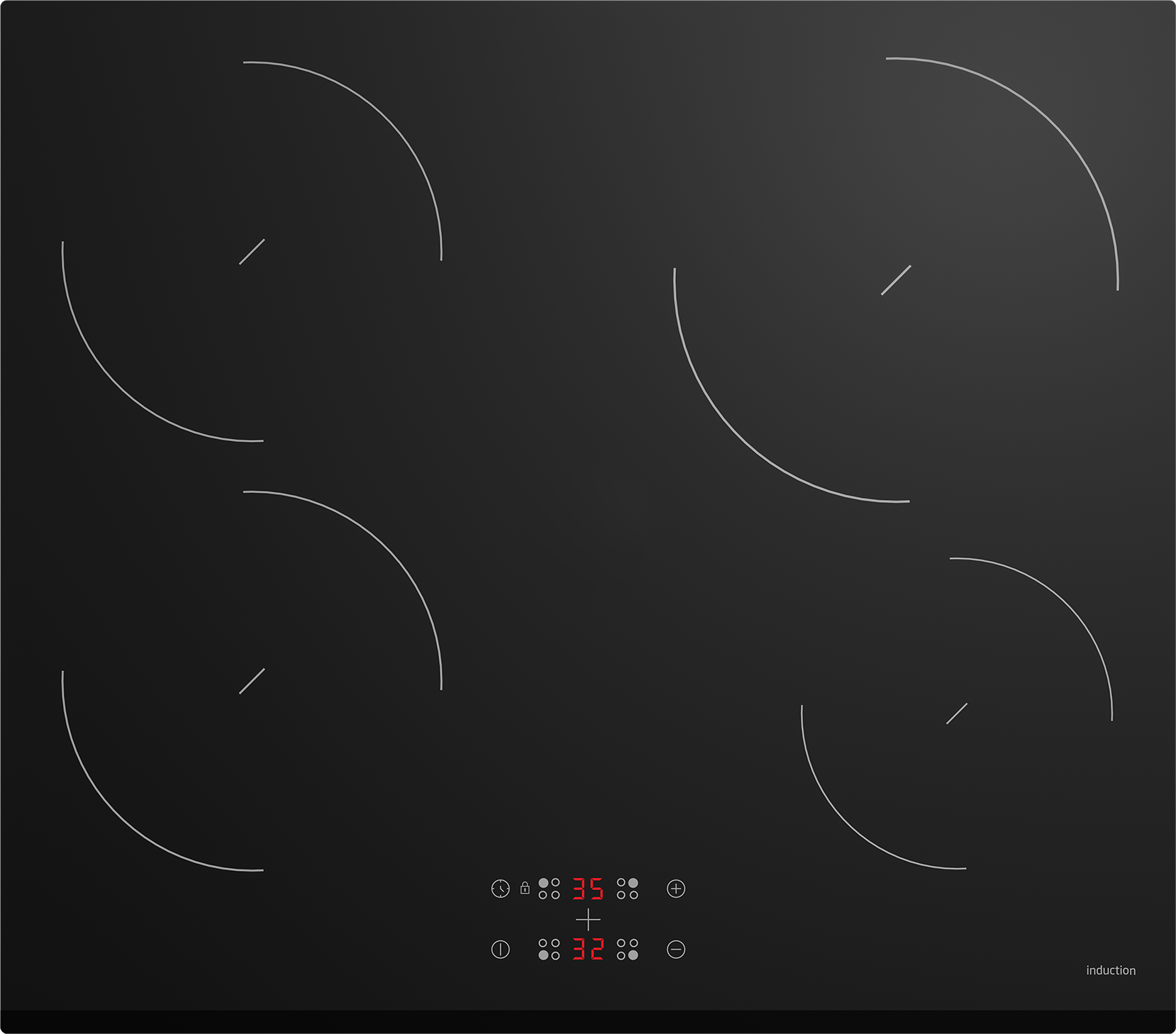 Kogezoner: 4 induktionszoner med størrelser og effekter:
