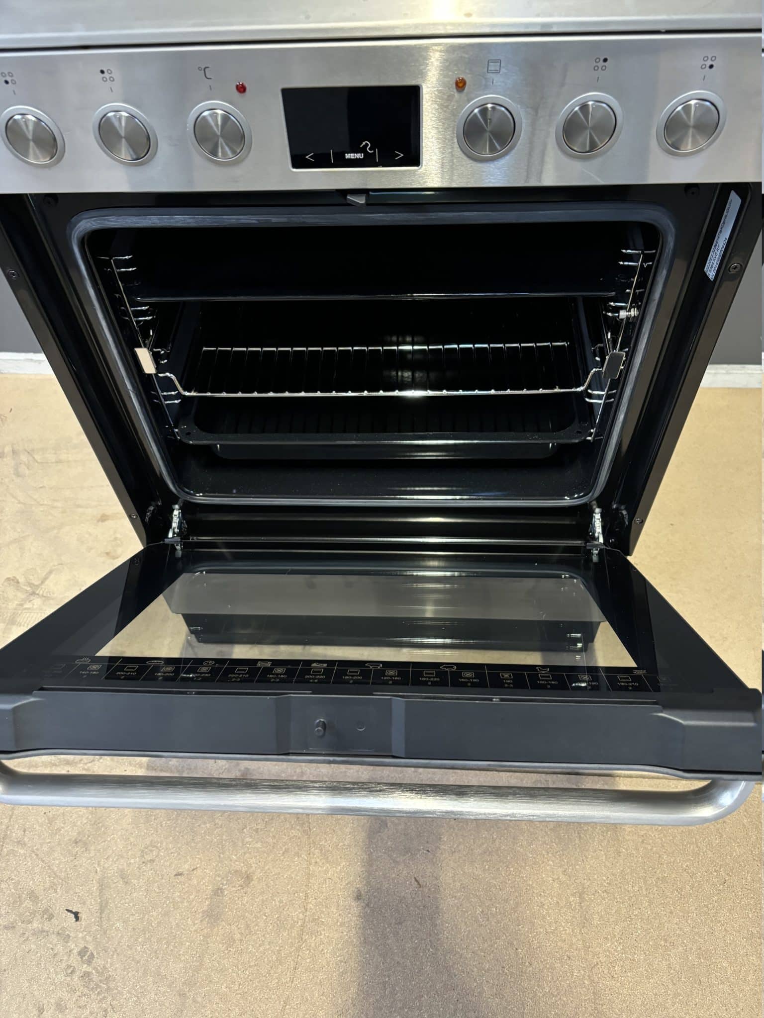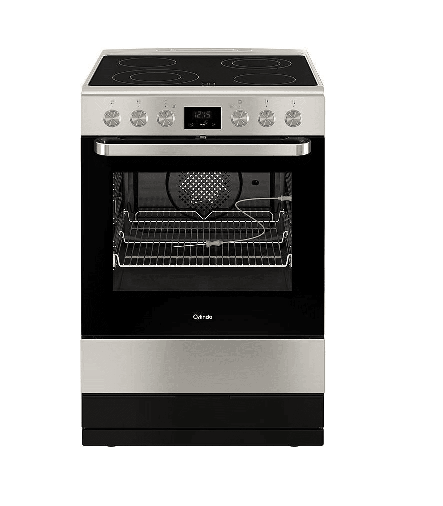 Cylinda keramisk komfur S6364KVERF er et stilrent og effektivt keramisk komfur i rustfrit stål, designet til dig, der ønsker høj ydeevne og brugervenlighed i køkkenet. Med fire kogeplader – heraf to med udvidede zoner – får du fleksibilitet til både hverdagens madlavning og større gryder. Den rummelige 77-liters ovn er udstyret med varmluft, pizzafunktion, grill og stegetermometer, så du nemt kan tilberede alt fra sprøde pizzaer til saftige stege.