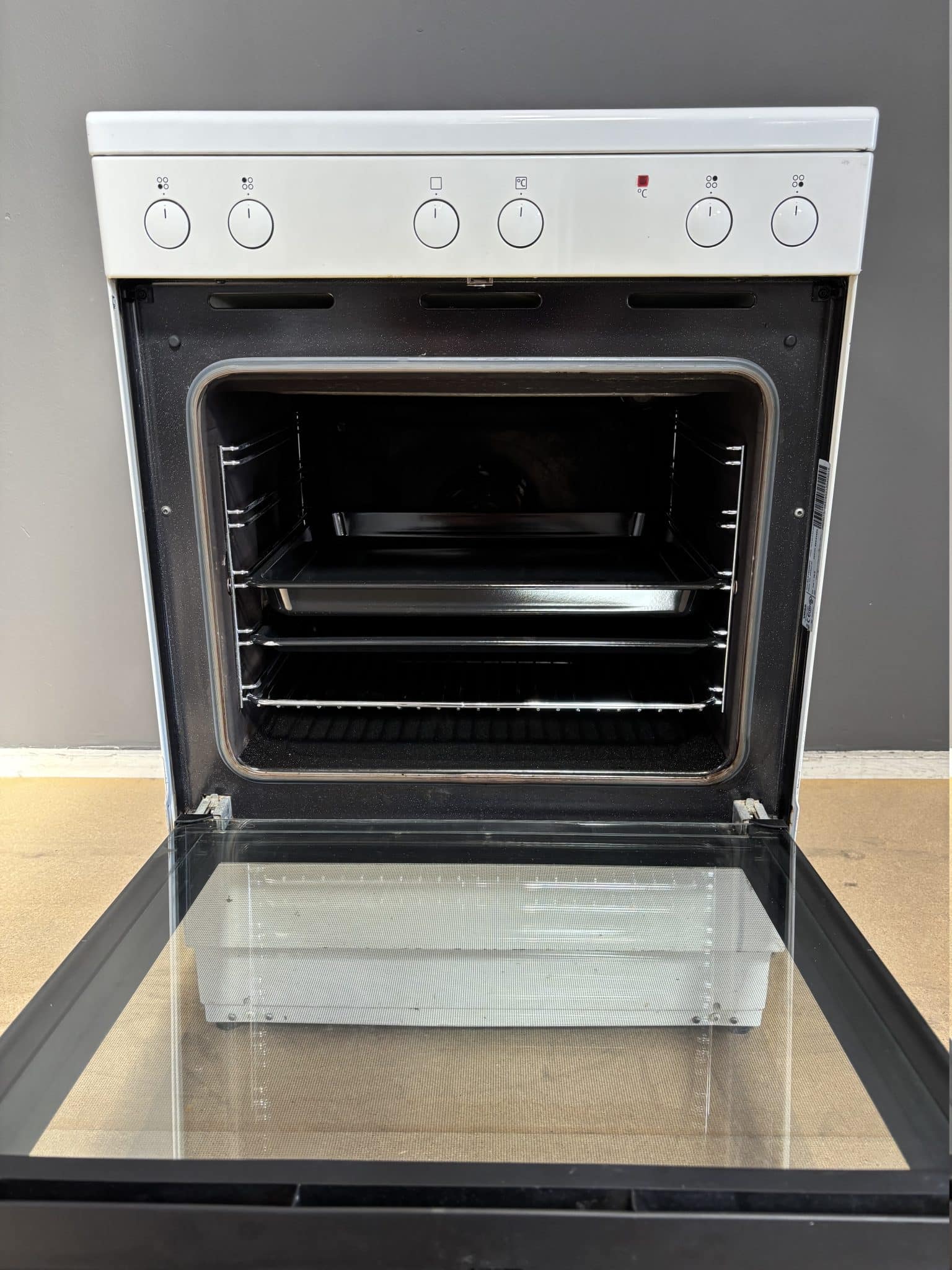 Indretning: Ovnbelysning (dobbelt ovnlys), 2 bageplader, 1 dyb bradepande, 1 grillrist